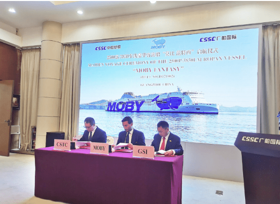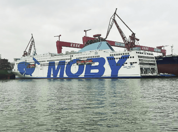 Moby Fantasy, con la sua Balena Blu dipinta sulla fiancata, partirà dalla Cina nei prossimi giorni e attraverserà due oceani per giungere poi nel Mediterraneo dove entrerà in servizio sulla rotta Livorno-Olbia.