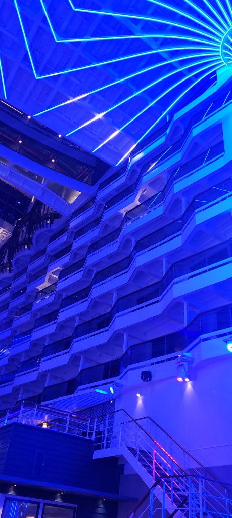 Il design è la fine del mondo, arricchito dell’elegante scivolo in acciaio, Venom Drop@ The Spiral, che consente agli ospiti di raggiungere in modo veloce e divertente i ponti inferiori.