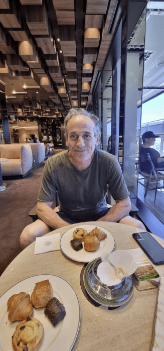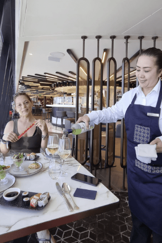Il buffet non è sempre aperto, chiude alle 14. Ma chi è a bordo di Explora sa che può usufruire del servizio in suite dinning . Ordinando dal menu interattivo, in poco tempo si ha pranzo o cena direttamente nella tua Suite e il servizio è incluso.