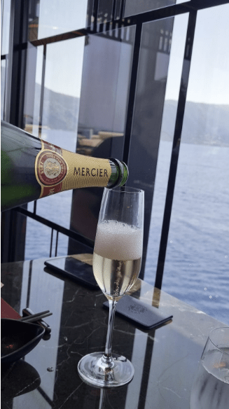 Volendo si può pranzare, cenare o fare un aperitivo bevendo Champagne.